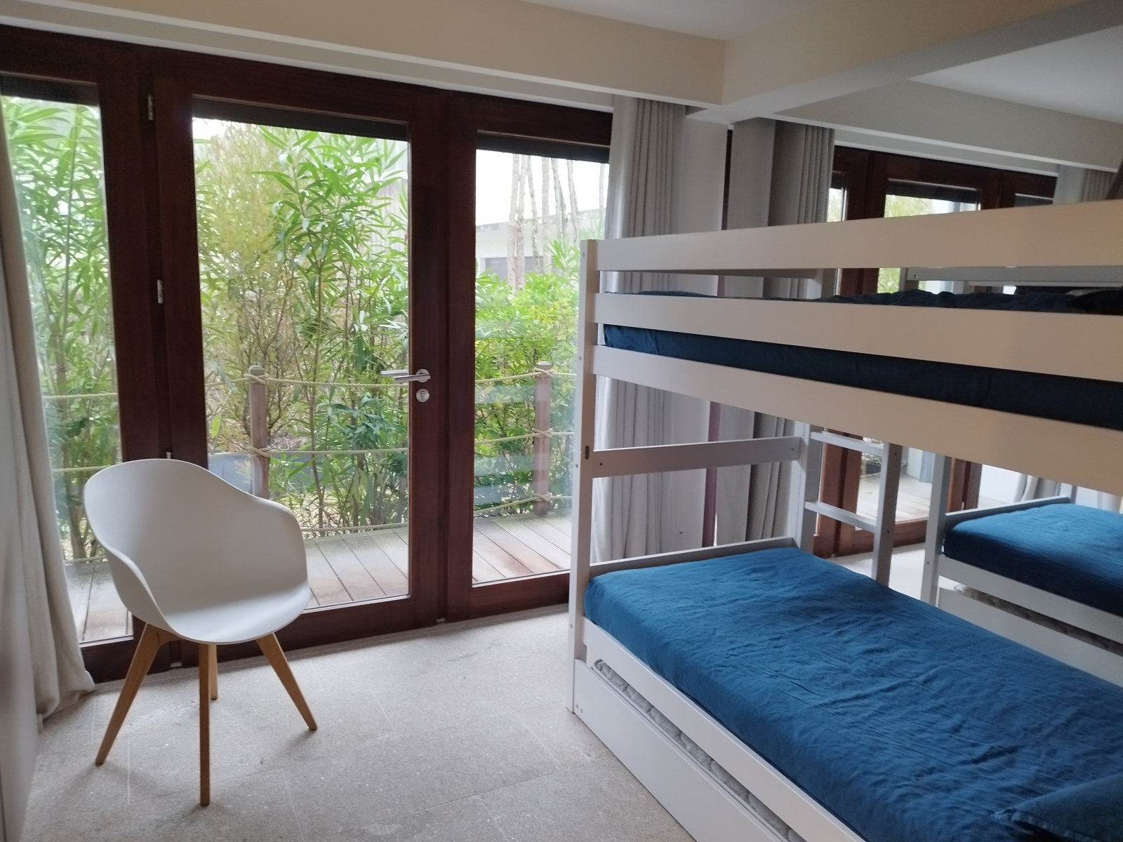Les volumes généreux et la luminosité naturelle soulignent le raffinement des lieux. La propriété propose au rez de chaussée 3 chambres dont un dortoir et une élégante suite parentale, une buanderie. A l'étage, deux chambres suplementaires avec salle d'eau et wc. Grand salon-séjour traversant, entièrement vitré, baigné de lumiere grâce à de larges bains vitrées, avec cuisine ouverte équipée d'un îlot central.